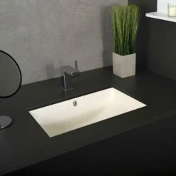 DAX Ceramic Square Single Bowl Undermount Bathroom Sink, Ivory Finish, 22-1/6 X 15-1/2 X 8-5/16 Inches (BSN-202G-I)